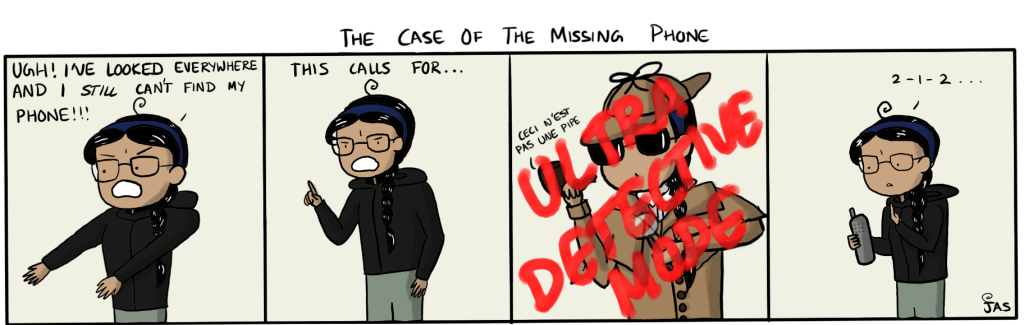 regular comics The Case of the Missing Phone February 6, 2022March 26, 2022 thejasworldcomics First comic with a bonus panel! I don’t want to get censored or anything because there’s a pipe there so I added that Rene Magritte reference 😉 Here’s the bonus panel! Share this: Click to share on X (Opens in new window) X Click to share on Facebook (Opens in new window) Facebook More Click to share on Reddit (Opens in new window) Reddit Click to share on Tumblr (Opens in new window) Tumblr Click to share on Pinterest (Opens in new window) Pinterest Click to share on WhatsApp (Opens in new window) WhatsApp Like Loading... Related Share this: Click to share on X (Opens in new window) X Click to share on Facebook (Opens in new window) Facebook More Click to share on Reddit (Opens in new window) Reddit Click to share on Tumblr (Opens in new window) Tumblr Click to share on Pinterest (Opens in new window) Pinterest Click to share on WhatsApp (Opens in new window) WhatsApp Like Loading...