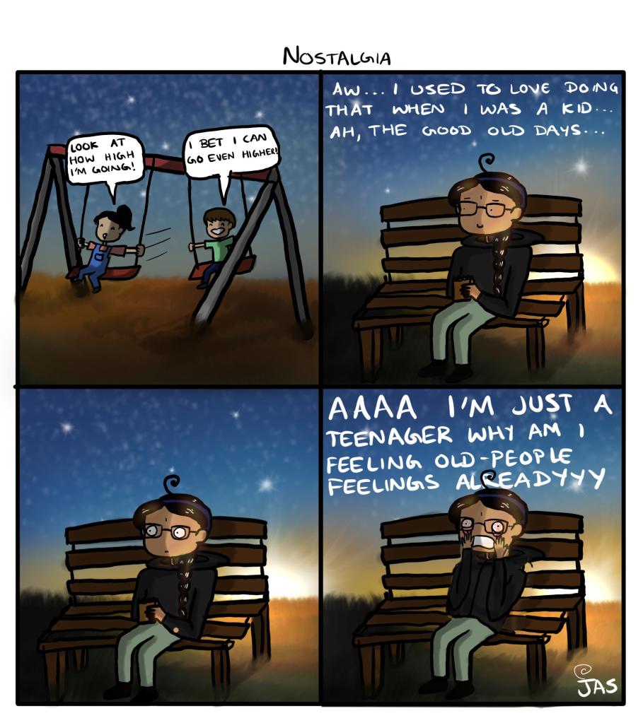 regular comics Nostalgia February 27, 2022March 26, 2022 thejasworldcomics Nostalgia – I love it, I hate it. Share this: Click to share on X (Opens in new window) X Click to share on Facebook (Opens in new window) Facebook More Click to share on Reddit (Opens in new window) Reddit Click to share on Tumblr (Opens in new window) Tumblr Click to share on Pinterest (Opens in new window) Pinterest Click to share on WhatsApp (Opens in new window) WhatsApp Like Loading... Related Share this: Click to share on X (Opens in new window) X Click to share on Facebook (Opens in new window) Facebook More Click to share on Reddit (Opens in new window) Reddit Click to share on Tumblr (Opens in new window) Tumblr Click to share on Pinterest (Opens in new window) Pinterest Click to share on WhatsApp (Opens in new window) WhatsApp Like Loading...