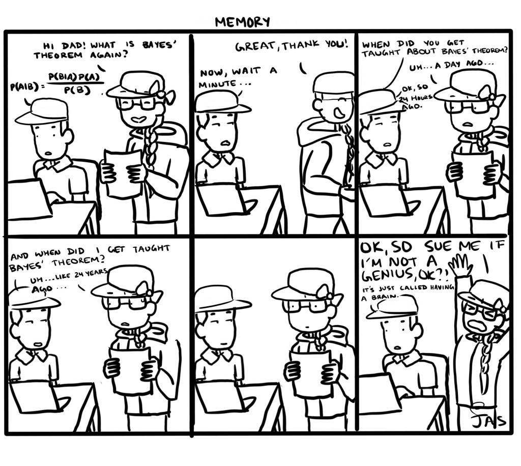 regular comics Memory June 19, 2022June 19, 2022 thejasworldcomics Happy Father’s Day! The best part of this comic is that I had to look up Bayes’ Theorem for it (I wonder why) Share this: Click to share on X (Opens in new window) X Click to share on Facebook (Opens in new window) Facebook More Click to share on Reddit (Opens in new window) Reddit Click to share on Tumblr (Opens in new window) Tumblr Click to share on Pinterest (Opens in new window) Pinterest Click to share on WhatsApp (Opens in new window) WhatsApp Like Loading... Related Share this: Click to share on X (Opens in new window) X Click to share on Facebook (Opens in new window) Facebook More Click to share on Reddit (Opens in new window) Reddit Click to share on Tumblr (Opens in new window) Tumblr Click to share on Pinterest (Opens in new window) Pinterest Click to share on WhatsApp (Opens in new window) WhatsApp Like Loading...